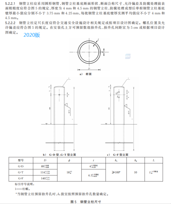 n) 更改了鋼管立柱公稱尺寸和允許偏差的要求(見 5.2.2.1,2015 年版的 4.2.2.1);