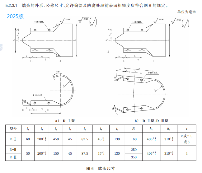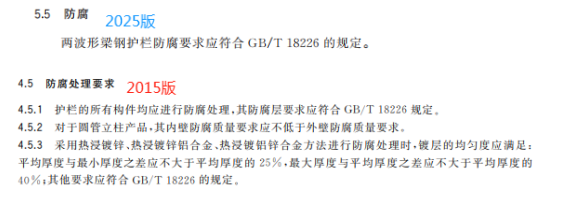 r) 更改了兩波形梁板、鋼管立柱、端頭、托架、橫隔梁等構件的材質要求(見 5.3.1,2015 年版的4.3.1);