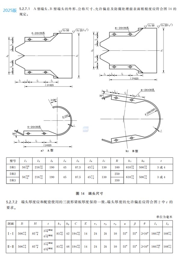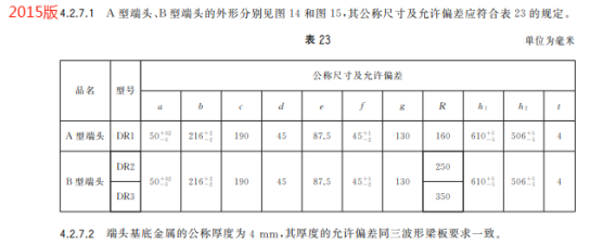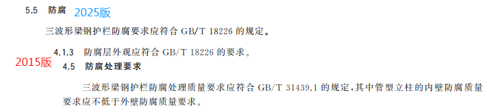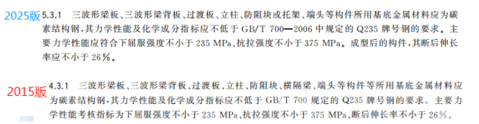 r) 更改了三波形梁板、三波形梁背板、過渡板、立柱、防阻塊或托架、端頭等構件的材質要求(見5.3.1,2015年版的4.3.1);