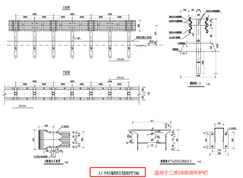 ? 三波形SBm級分設型中央分隔帶波形護欄