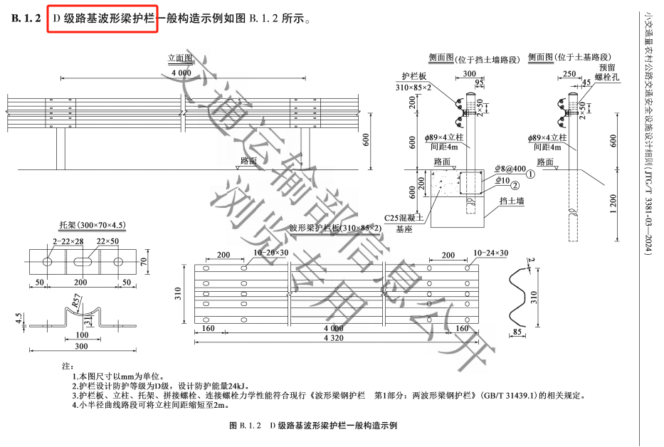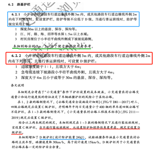 C級和D級波形護欄都可以運用在鄉村公路的安全防護中,D級護欄具體的在什么情況下使用,在《小交通量農村公路交通安全設施設計細則(JTG/T 3381-03-2024)》中也說的非常詳細:
