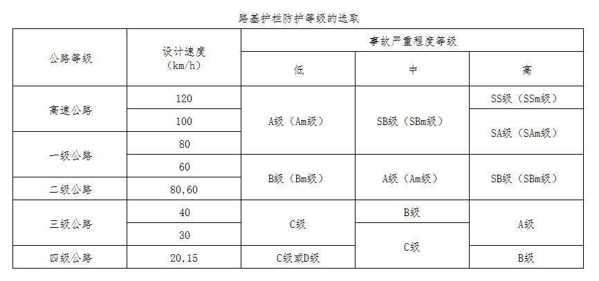 事故嚴重程度等級是判斷護欄防護等級選取的重要前置條件,同時也相關護欄設置必要性的判斷條件,當等級為“高”時,必須設置護欄,當等級為“中”時,應設置護欄,當等級為“低”時,宜設置護欄。